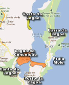 Estamos localizados em Florianópolis, no bairro da Lagoa da Conceição na região da Costa da Lagoa (em amarelo).