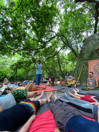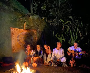 Nosso espaço também é dedicado à honra da natureza , com cerimônias ao redor da fogueira que incluem cantos, rezos e música.