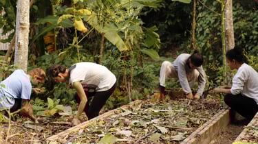 Projeto Lixo Zero : seguimos os princípios dos 3R's (Reduzir, Reutilizar, Reciclar). Por exemplo, resíduos plásticos são transformados em ecobricks , usados em futuras bioconstruções.